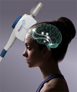 The NeuroStar TMS Therapy system generates highly concentrated, magnetic fields thorough a treatment coil which turn on and off very rapidly. These magnetic fields are the same type and strength as those produced by a magnetic resonance imaging (MRI) machine.The treatment coil is applied to the head above the left prefrontal cortex.